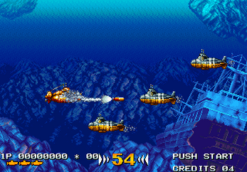 In The Hunt is a submarine shooting game that is well-known among Irem fans for its vibrant graphics and detailed animation, which are immediately reminiscent of Metal Slug - and for good reason, as the game was designed by the same staff that would later on form Nazca Corporation.